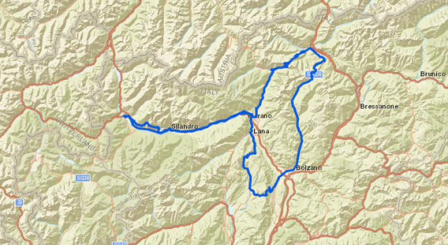 Die Sarner Tour führt von der mittelalterlichen und kleinsten Stadt Europas Glurns, aus durch den Vinschgau in die zweitgrößte Stadt Südtirols Meran. Von dort aus geht es in die Heimat Andreas Hofers in das Passeiertal und über den Jaufenpass nach Sterzing, in eine der 8 Städte Südtirols. Über das Penserjoch fahren wir ins das Sarntal, von wo aus man in die Landeshauptstadt nach Bozen kommt. Hier im Talkessel um Bozen kann man in einer der vielen Kellereien Halt machen und sich stärken, um dann über den kurvenreichen Mendelpass auf das Hochplateau nach Fondo zu gelangen. Von dort aus fahren wir über den Gampenpassnach Lana und Meran um uns dann wieder Richtung Vinschgau zu begeben. Direkt neben der Staatstrasse in Fahrtrichtung Reschen, liegt die Brauerei Forst im gleichnamigen Ort, die größte Brauerei Südtirols. Dort ist es für Einheimische sowie auch bei Touristen fast immer ein Muss einzukehren und eines der vielen Biere oder Spezialitäten zu probieren. Ab Laas kann man dann einen kleinen Insider Weg nach Schluderns fahren, der einen atemberaubenden Ausblick über den Obervinschgau, der ehemaligen Kornkammer Tirolsermöglicht. Hierzu fährt man in Laas von der Staatstrasse ab und hinauf in das malerische Dörfchen Tanas und dann weiter nach Schluderns am Fuße der Churburg, wo wir auch schon wieder am Ausgangspunkt angekommen wären.